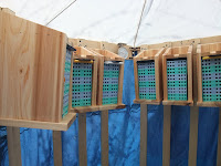 What do I use to let them emerge in, while indoors? I see you sell emergence shelters. As they are emerging, can the first to emerge just stay in the shelter (or box?) while I wait for the rest to emerge, or do they need to be released immediately as they emerge? I usually set the emergence shelter with cocoons inside my home at 65- 70C for a day prior to setting them out. The emerged bees, will be inside the emergence shelter until released the next morning. Of course I take the risk that if it rains ( or is very cold) for a week, I will loose the emerged bees. I find the emergence shelter the most useful emergence tool because it is bee- tight. I usually set out 1/4 of my cocoons out at the time, with 5-7 day gap between emergence. This way, some batches may be lost due to the weather, but unlikely that all four batches will be lost due to bad weather.